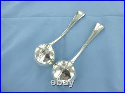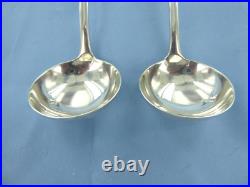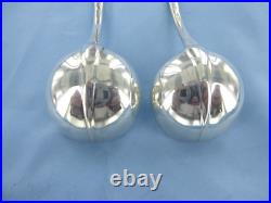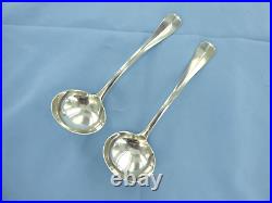 A VINTAGE PAIR OF STERLING SILVER OLD ENGLISH RAT TAIL SAUCE LADLES. HALLMARKED FOR LONDON IN 1929, MAKERS MARK F. MEASURING 180 mm IN LENGTH, WITH THE BOWLS BEING 51.5 mm BY 50.5 mm ACROSS. OF GOOD GAUGE AND, COLOUR WITH NO DENTS OR ERASURES, THE LADLES WOULD BENEFIT WITH A LIGHT CLEAN, WEIGHING IN TOTAL 155.4 GRAMS.