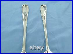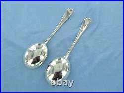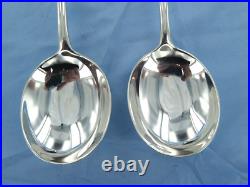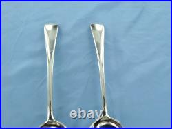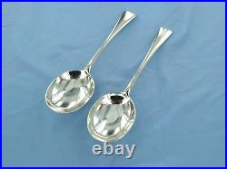 AN ANTIQUE STERLING SILVER PAIR OF OLD ENGLISH SOUP SPOONS, HALLMARKED FOR LONDON IN 1927, MAKERS MARK D. F, FOR DEAKIN & FRANCIS.