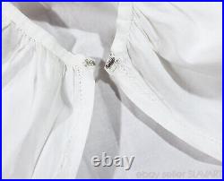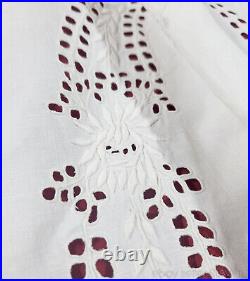 It is made of fine homespun linen with whitework embroidery of very fine quality. The metal hooks at the sides are surely replacements for older fasteners or ties. The photos should speak for themselves, but please do not hesitate to ask if you are interested in any other details. It has been very well preserved over the past century.