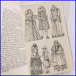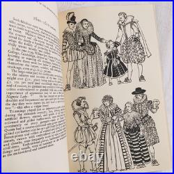 The monochrome illustrations also capture popular dress shapes, hats, and hairstyles, making it an engaging read for enthusiasts of vintage fashion. Item Length: 16.5 cm. Condition: Overall yellowing, minor tears, and wear due to age; cover shows signs of damage. C:Book Title: History of British Fashion.