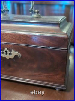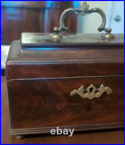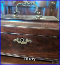 Antique Chippendale Tea Caddy Box Mahogany & Brass 18th Early 19th Century