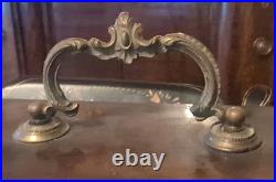Awesome Antique Chippendale tea caddy divided box with brass hardware. Mahogany veneer over oak, bail handle & bat wing keyhole surround. Unmarked, English late 18th to early 19th century. Measures 9 7/8" x 6" x 5 1/2 deep. In good condition with some minor wear and staining, replaced brass feet, lacking key or lock hold.