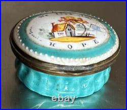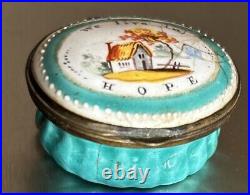Antique English 18th 1780s Battersea Bilston Enamel Patch Box We Live In Hope