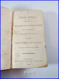 Antique Holy Bible 1806 Rare Pocket Colorful Inside Cover with Family History Vtg