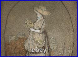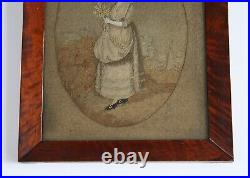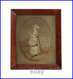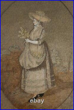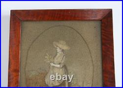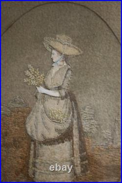 No apparent damage, Early 19th Century English Silk Work on Felt, of a Lady, in original antique frame with wavy glass. The backboard appears to be a replacement. 12 3/4" X 10 1/4". The photography is part of the description. WE GUARANTEE THE AUTHENTICITY OF OUR MERCHANDISE AS REPRESENTED.