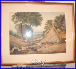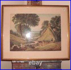 Antique Victorian Watercolour Painting Of a. Antique Victorian watercolour painting of the English country side, depicting a dilapidated shepherds cottage (run down) with the thatch coming off, shepherds and sheep in the background. It has very slight foxing and a minor sun bleaching considering that it is a Victorian watercolour painting, at least 120 - 150 years old; it remains in a very good condition colours being quite bright and sharp.