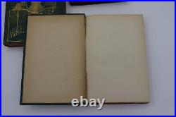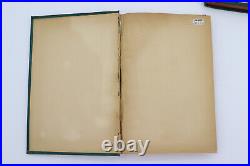 The writing inside is very small, like that of a bible. The books are great for reading or for decoration! The books are in good vintage condition, but there is discoloration, writing, torn pages and wear from age and use. Some binding is becoming loose. Each individual book measures 10.75" x 7.5".