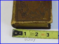 Miniature Antique Vintage 1877 BIBLE Brown gold edges Leather Bound Book 3.5x5