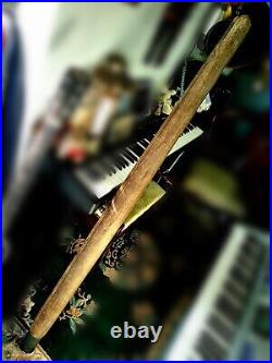 This vintage tripod possible lamp stand is a beautiful addition to any room. Made from oak or mahogany with an unpolished finish, it stands at a height of approximately 153cm and has a width of 8cm. With a bronze finish and an English style, this original piece is ideal for indoor use and has no additional parts required. Finish unpolished, and it is in its original condition.