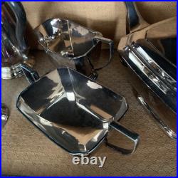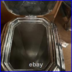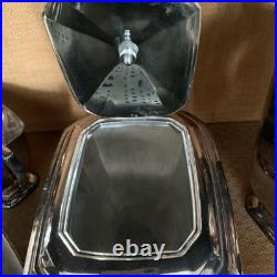 Key features and information include: Style: Art Deco, characterized by geometric shapes, clean lines, and a blend of simplicity and opulence. Set Components: The set includes 1 teapot 1 coffee pot 1 hot water pot (bottom is a little unstable but no problem for usage) 1 milk jug 1 sugar bowl Helpful information: The markings read "MADE IN ENGLAND, " "PLATO, " and REGE PLATO EUS. Plato EPNS items can include ice buckets, vases, tea sets, and trays, dating back to the mid-20th century.