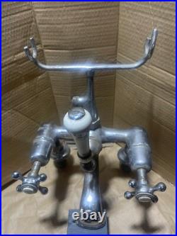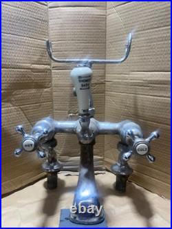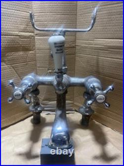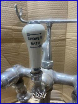 Bathroom tap set is very well made, extremely heavy and definitely built to last. There is an arm which controls either bath or shower. There is a slight chip in handlesee photos. Shower head and hose are missing but should be easy to obtain. I've been told that the taps are likely to be made of brass or bronze then chrome plated. Could do with light restoration. The taps would make a great finishing touch to your period restoration project.