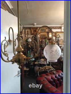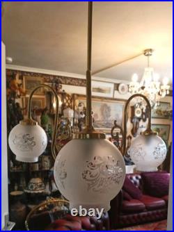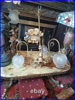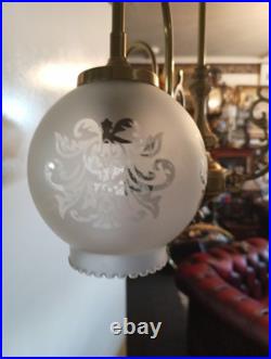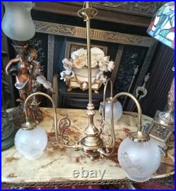Vintage English Edwardian Style Chandelier in Solid Brass 3 Arms+ Engraved Shade