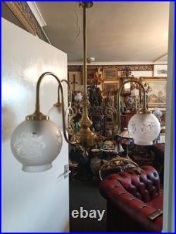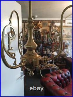 This Vintage English Edwardian Style Chandelier is a stunning piece crafted from solid brass with a beautiful gold colour. With 3 arms and a shade, this large chandelier exudes elegance and sophistication, perfect for adding a touch of vintage charm to any room. The style is Dating back to the 1920s, this chandelier is an authentic and original vintage piece that will elevate any space with its classic Edwardian style. Ideal for those looking to bring a piece of history into their home, this chandelier is a true statement piece.