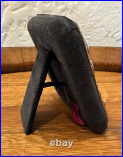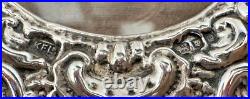 The silver itself is excellent, but it does have some stubborn tarnish remaining in the crevices of the design. The silver is mounted on a frame of black velvet, which is now somewhat faded and worn, particularly around the front edges. In addition, the silver facia is not mounted entirely flush with the edges of the frame.