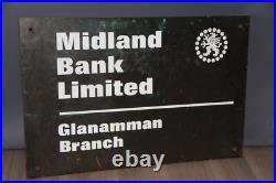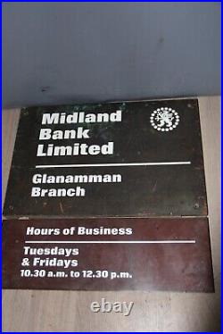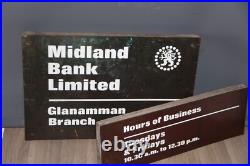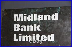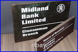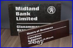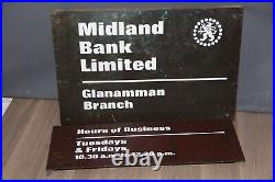 This one still has age. Both signs have rubs /marks /wear/ some scratches. Four holes at corners to the midland sign, used to attach it to the bank wall. A fabulous vintage item, Getting harder to find these now. These will became a item of the past. Great collectors piece, man cave, or Ideal Wall display item. Vintage item therefore signs of ware. Includes back board midland sign - 45cm (18) wide. Hours sign - 45cm (18ins) wide 15cm (6ins) high. And not been touched up/repaired or restored (unless stated). Further images & detailed condition reports are always available on request. & always feel free to get in touch. Thanks for looking & please do check out our other items!